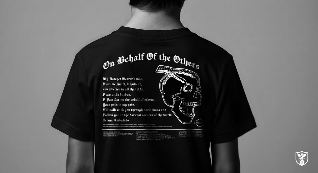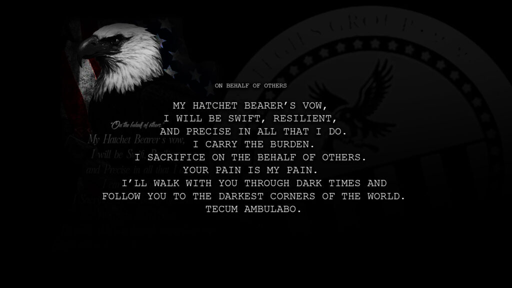 A Hatchet Bearer guides clients through hard times, In times of crisis or turmoil. We vow to always take on the burden. Guiding clients through darkness Providing solutions not excuses.